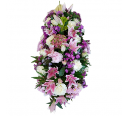 Lors d’une cérémonie funéraire, il est d’usage de disposer sur le cercueil une grande composition florale qui accompagnera le défunt de la veillée jusqu’au moment des obsèques. Ainsi, le dessus de cercueil permet d’apporter un message d’espoir et de réconfort aux proches endeuillés. Cette grande création florale peut recouvrir la totalité du cercueil, elle pourra être composée de fleurs piquées comme des roses, des lys ou encore des gerberas. La famille pourra également choisir d’accompagner le dessus de cercueil d’un ruban sur lequel elle fera inscrire un dernier message d’amour.