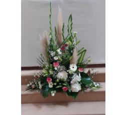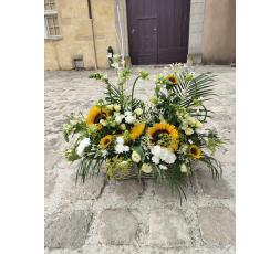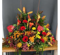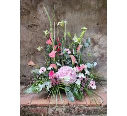 Majestueux devant de tombe est composé avec des fleurs de saison dans les tons que vous souhaitez. De roses, de lys et de fleurs de saison dans les tons roses, jaunes, blanc..., symboliseront l'affection et la tendresse de l'être aimé. Avec ses fleurs délicates et raffinées, ce devant de tombe saura exprimer la sincérité de vos sentiments tout en transmettant vos messages de condoléances avec douceur.