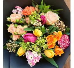Somptueux bouquet élégant et moderne. Votre fleuriste compose cette création avec des fleurs de saison dans les tons verts et blancs