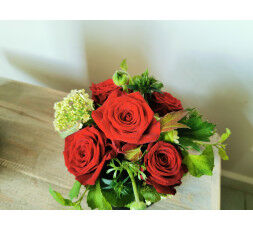 Boite à chapeau sublimée avec 5 belles roses rouge .