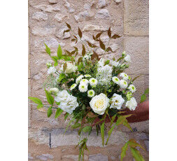 Composition de fleurs aérées de style champêtre.