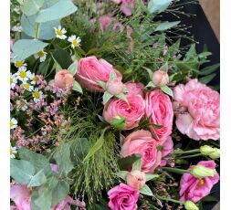 Tendresse, magnifique bouquet de fleurs de saison dans les tons roses.