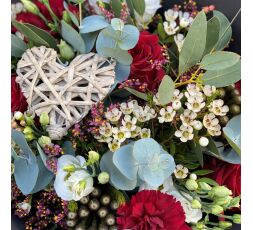 Superbe bouquet de fleurs composé par votre fleuriste. Dans les tons rouges et blancs, le bouquet idéal pour une déclaration