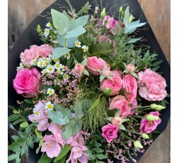 Tendresse, magnifique bouquet de fleurs de saison dans les tons roses.