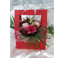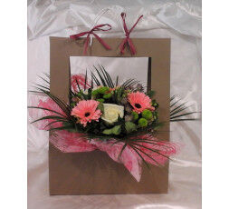 bouquet rond dans son sac de présentation, avec sa bulle d'eau