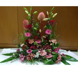 Composition en hauteur à placer au pied du cercueil.