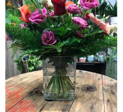 Bouquet en carré d'eau, fleurs selon disponibilité, photo non contractuelle