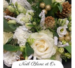 Magnifique et élégant bouquet de Noël. Les roses, les lisianthus et les pommes de pins sauront sublimer votre intérieur.