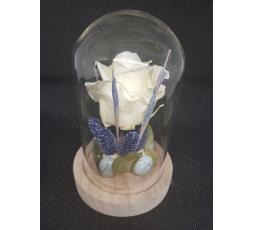 Rose éternelle de différents coloris sous globe en verre