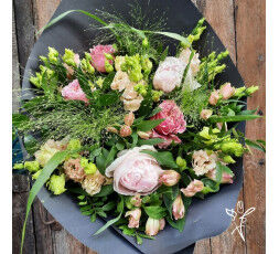JEANNE magnifique bouquet de pivoines et fleurs de saison dans les tons roses.