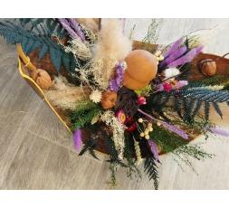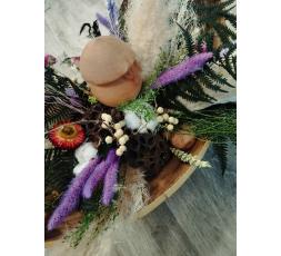 Composition en fleurs séchées et stabilisées mélangeant bois et champignon "Origine Corrèze".