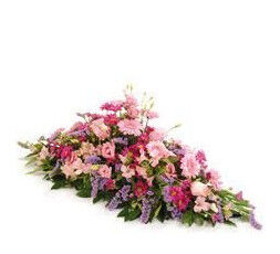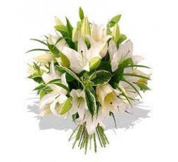 Magnifique composition de deuil composée de fleurs de saison aux tons blancs et verts