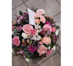 Magnifique coussin de deuil composée de fleurs de saison aux tons blancs et roses