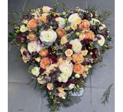 Un coeur de fleurs est un arrangement floral en forme de cœur qui peut être utilisé pour honorer la mémoire d'un être cher. Ces arrangements sont souvent composés de fleurs fraîches, comme des roses, du lisianthus ou des hortensias. Les couleurs des fleurs peuvent être choisies en fonction des goûts et des préférences du défunt, ou en fonction du thème de la cérémonie.