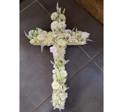 La croix de fleurs pour deuil est un hommage floral élégant et émouvant, conçu pour exprimer vos condoléances et votre soutien dans les moments de chagrin. Cette pièce artistique se distingue par sa symbolique et sa beauté, offrant un dernier adieu respectueux à un être cher. Votre fleuriste saura vous accompagner et vous conseiller pour le choix des fleurs : roses, lisianthus, oeillets,....