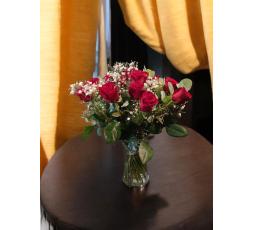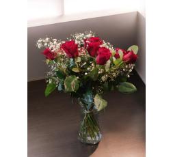 Ce bouquet de roses rouges, soigneusement arrangé, est une véritable œuvre d'art floral. Composé de fleurs fraîches, il est sublimé par des gypsophiles délicats et des feuilles d'eucalyptus, ajoutant une touche de verdure et de légèreté. Parfait pour exprimer des sentiments profonds ou pour embellir un intérieur, ce bouquet incarne la beauté et la passion.